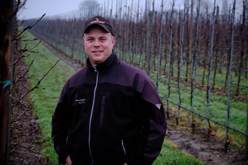 Op het fruitbedrijf telen de fruittelers op 32 hectare Migo en Conference en op 43 hectare Goudreinetten, Elstar, Red Prince, Kanzi, Tessa, Maribelle, Gala en Golden Delicious. Verstegen: ‘Bij appel vernieuwen we om de tien tot twintig jaar. Ons oudste perceel appels is veertien jaar oud, het jongste één jaar. Als de boom ouder wordt, neemt de kwaliteit van de boom en het fruit af. De laatste twee jaren hebben we oudere fruitbomen vervangen door het clubras Tessa. Bij de aanplant van nieuwe rassen kijken we naar het plukvenster. We plukken nu in totaal zo’n acht weken. Maar we selecteren ook op hoe sterk een fruitras is. Zo is de Tessa bijvoorbeeld een sterk en weinig ziektegevoelig appelras, dat ook goed smaakt, wat eveneens een belangrijke overweging is bij de keuze van nieuwe aanplant.’