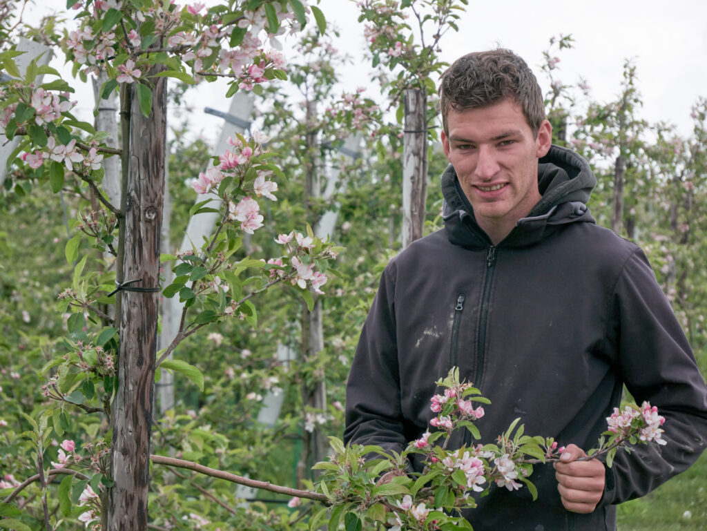 “We zijn eind oktober vorig jaar begonnen met snoeien in de boomgaard. We werken met een andere teler samen, maar uiteindelijk zie je maandenlang alleen je eigen kringetje. Ambassadeur van het Fruitpact worden leek me een goede manier om aan die beperkte groep eens te ontsnappen, nieuwe mensen te leren kennen.” De ambassadeursgroep fungeert als voelhorens in de fruitteelt. “Je kunt zeggen wat je hoort en ziet en wat er volgens jou in de fruitketen gebeurt.”