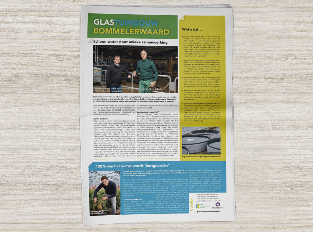 Een grote groep bewoners wordt graag op de hoogte gehouden van de ontwikkelingen in de sector. Het programma draagt bij aan het uitdragen van waar de sector mee bezig is en voor staat door maandelijks een pagina in de lokale Bommelerwaardgids te vullen. Hiermee laten de ondernemers zien wat het werken in de kas inhoudt en wat de sector doet op het gebied van duurzaamheid. Daarnaast staan er veel ondernemers centraal.